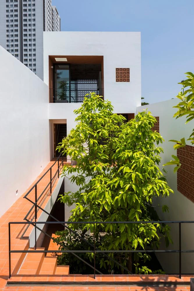 Giữa các căn phòng là khoảng trống lấy sáng và trồng cây xanh.