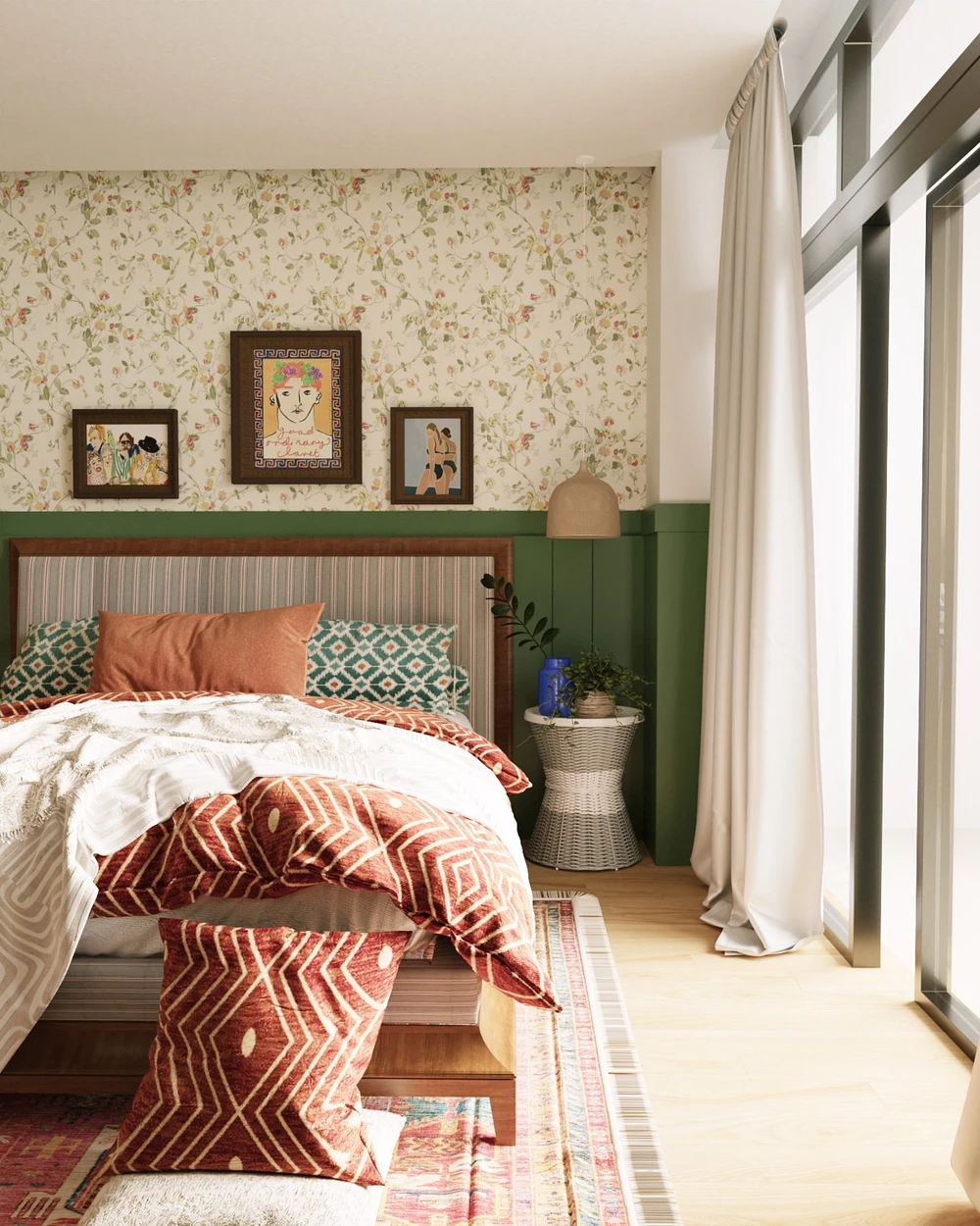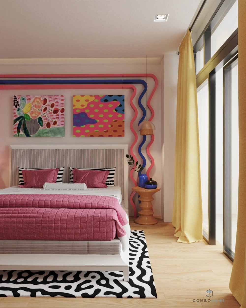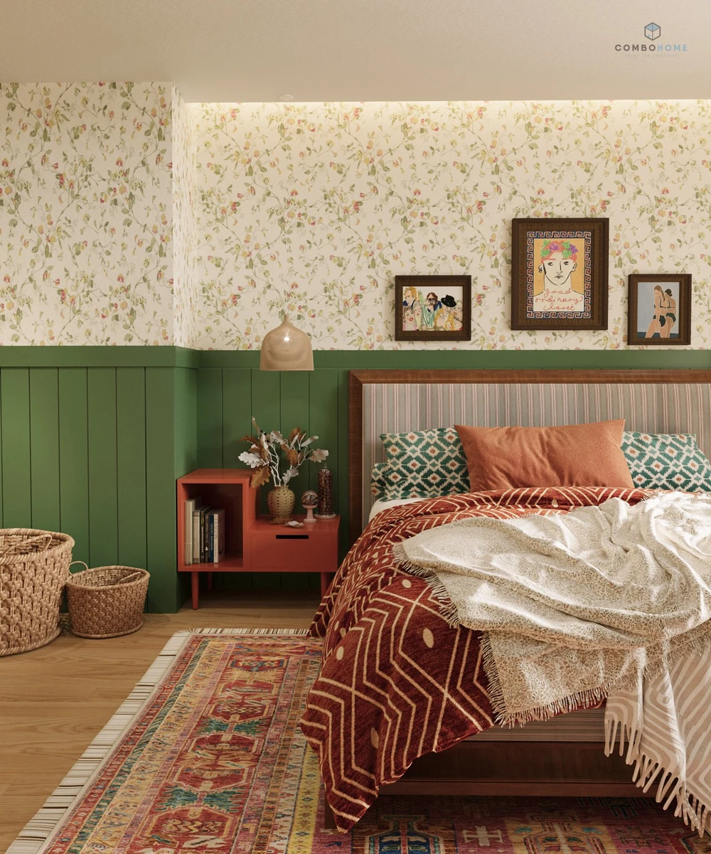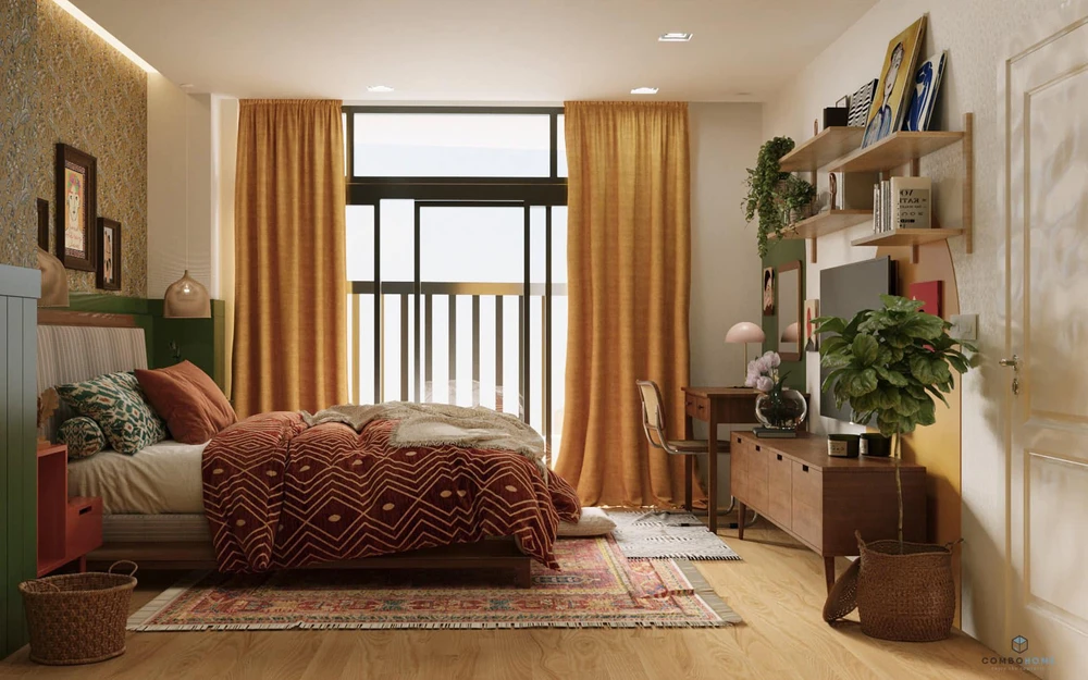 Nội thất trong phòng ngủ được lựa chọn chỉn chu, đầy màu sắc khiến căn phòng trở nên ấm cúng, gần gũi.
