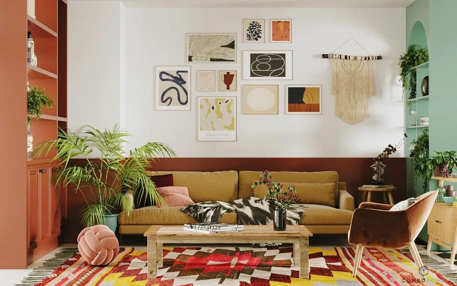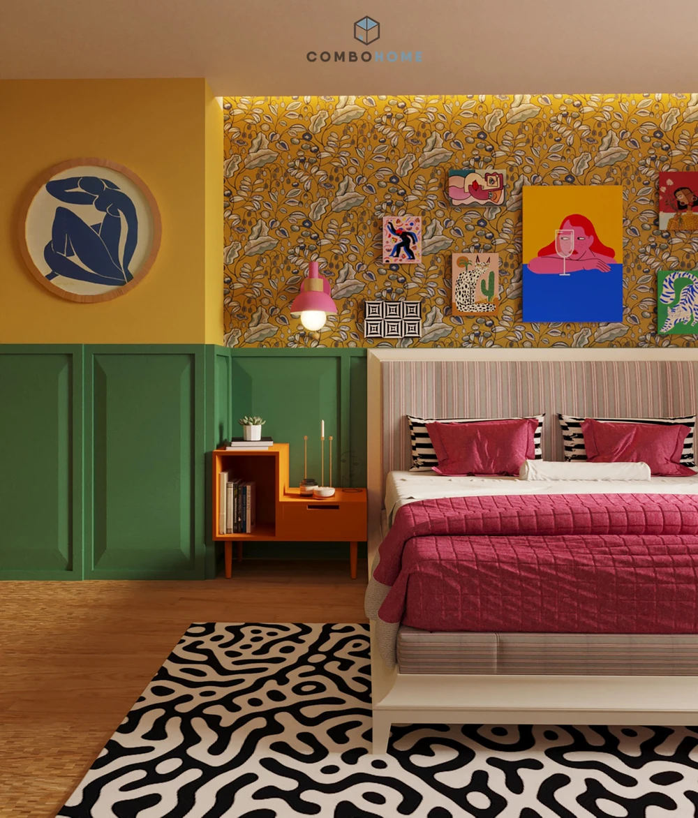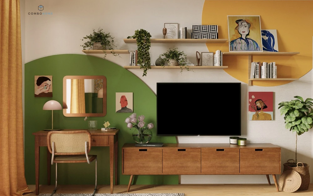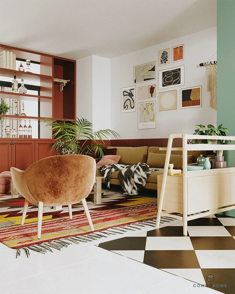 Kiến trúc sư Combo Home đã sử dụng sơn với nhiều sắc màu khác nhau cho tường, đồ gỗ và giấy dán tường họa tiết cao cấp biến căn hộ trông như một cô gái thời trang khỏe khoắn và trẻ trung.