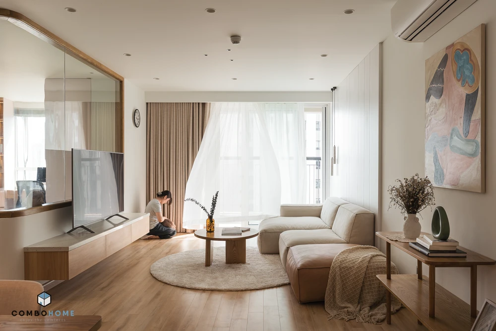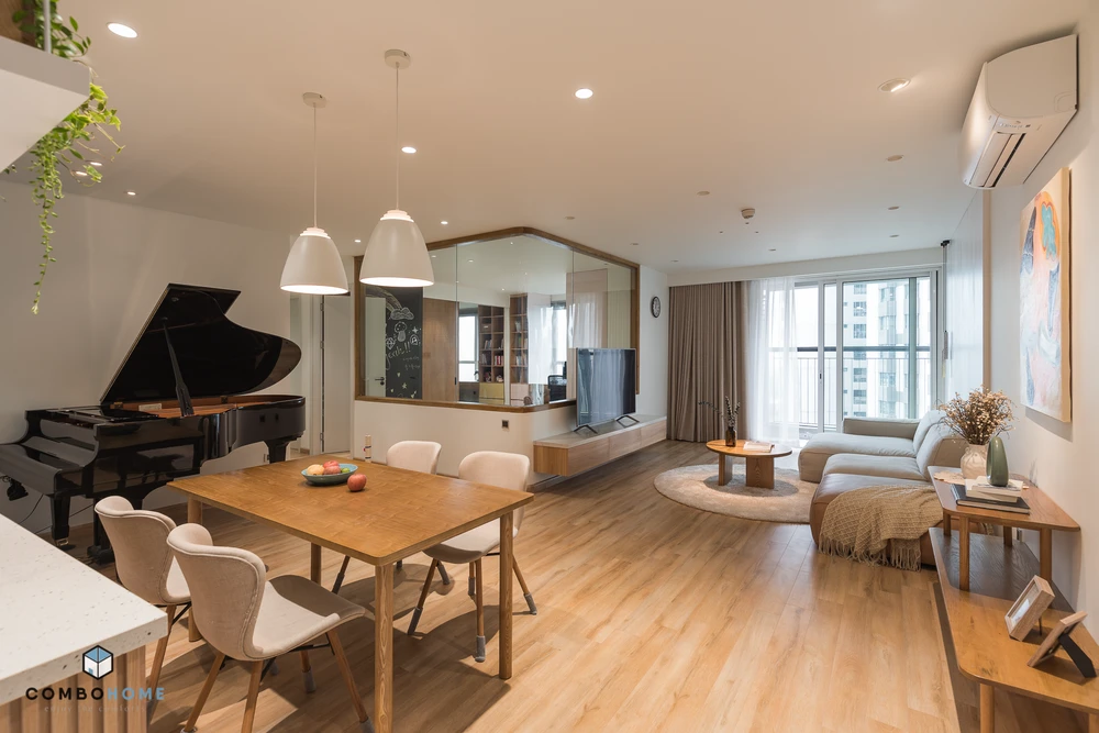 Căn hộ mang tên Light house có diện tích 110 m² ở TP Hà Nội. Gia chủ muốn căn hộ có không gian thoáng mát, đơn giản nhưng vẫn kết nối được thành viên trong gia đình thay vì những bức tường trong chung cư đơn thuần.