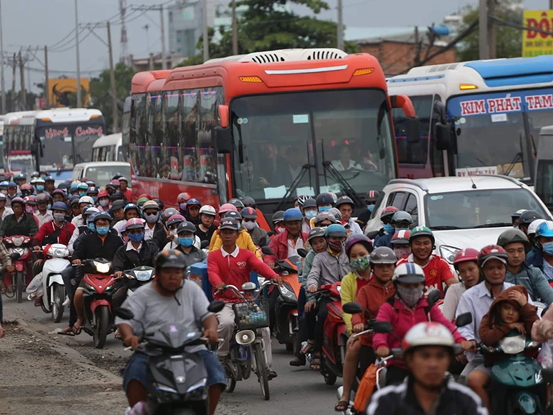Quốc lộ 1A đoạn ranh TP.HCM - Long An luôn bị kẹt xe nghiêm trọng vào giờ cao điểm. Ảnh: ĐÀO TRANG