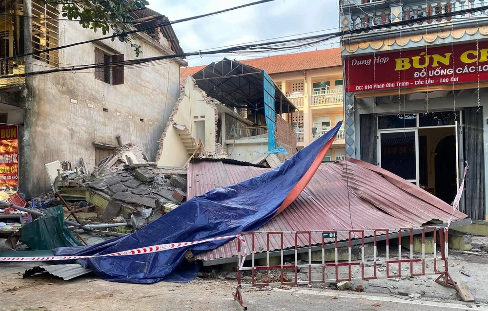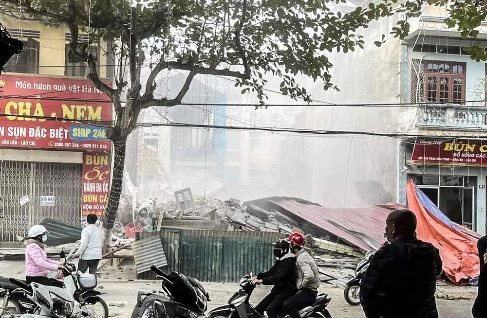 Theo đó, vào khoảng 15 giờ chiều cùng ngày, người dân tại Phường Cốc Lếu (TP Lào Cai) bất ngờ khi chứng kiến căn nhà 3 tầng địa chỉ tại số 118, đường Phan Chu Trinh bất ngờ đổ sập gần như hoàn toàn.