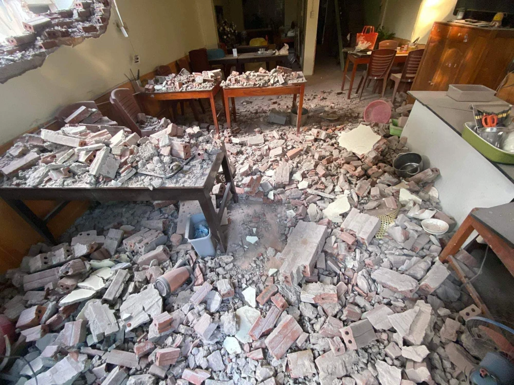 Các mảnh gạch vụn văng tung tóe sang các hộ dân gần đó. Ảnh CTV