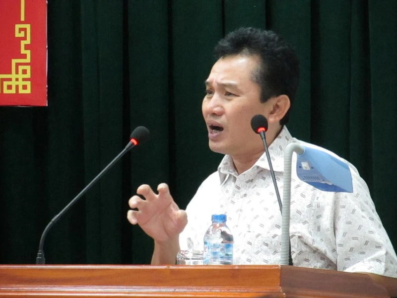 Ông Trần Hữu Hiệp góp ý tại cuộc họp chiều 10-8. Ảnh: N.NAM