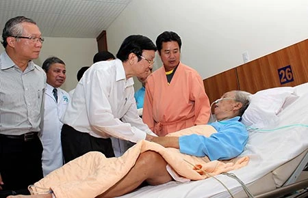 Chủ tịch nước thăm hỏi bệnh nhân tại BV ĐH Y Dược - Hoàng Anh Gia Lai. Ảnh: MINH VỸ
