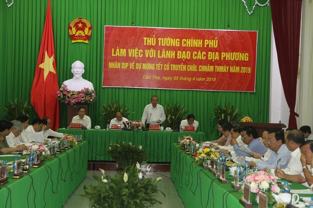 Chiều 5-4, tại UBND TP Cần Thơ, Thủ tướng Chính phủ Nguyễn Xuân Phúc đã có buổi làm việc với lãnh đạo các địa phương nhân dịp về dự mừng tết cổ truyền Chôl Chnăm Thmây 2019.