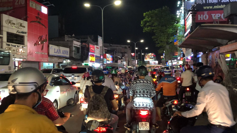 Kẹt xe trên đường Hoàng Sa, quận Tân Bình. Ảnh: THÁI NGUYÊN