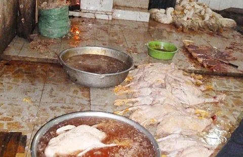 Cuối tháng 1-2015, đoàn kiểm tra liên ngành huyện Bình Chánh (TP.HCM) phát hiện ông Dương Hỷ Nh. ở xã Bình Hưng mổ vịt trái phép. Tại hiện trường, có 60 con vịt đang cắt tiết, gần 160 con vịt chờ “nhúng nước sôi” và hơn 160 con vịt đã bị nhổ sạch lông, mổ bụng (tổng trọng lượng hơn một tấn). “Số vịt không qua kiểm dịch, bị giết mổ trên nền đất dơ bẩn nên nguy cơ lây lan dịch cúm gia cầm rất cao. Đoàn kiểm tra đã tiêu hủy toàn bộ số vịt” - ông Nguyễn Hồng Triệu, Trạm trưởng Trạm Thú y huyện Bình Chánh, cho biết.