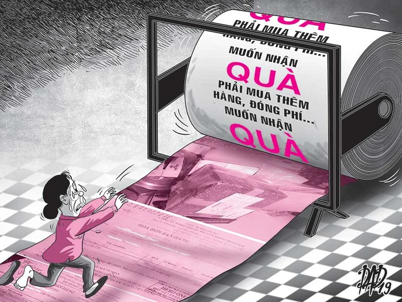 Cứ thế, bà đã mua rất nhiều sản phẩm mà không thấy quà tặng đâu nên nằng nặc đòi. Đến khi không thể từ chối giao quà tặng, nhân viên bán hàng mới yêu cầu bà đóng thêm tiền phí để xuất hàng, nếu không đóng sẽ bị hủy quà tặng. Bà đóng tiền phí xuất hàng xong thì một người khác lại xưng là bên thanh tra của công ty, bảo bà tiếp tục đóng tiền lưu kho thì mới nhận được quà. Quá bực, bà không chịu đóng thì bên đó báo đã hủy quà tặng.