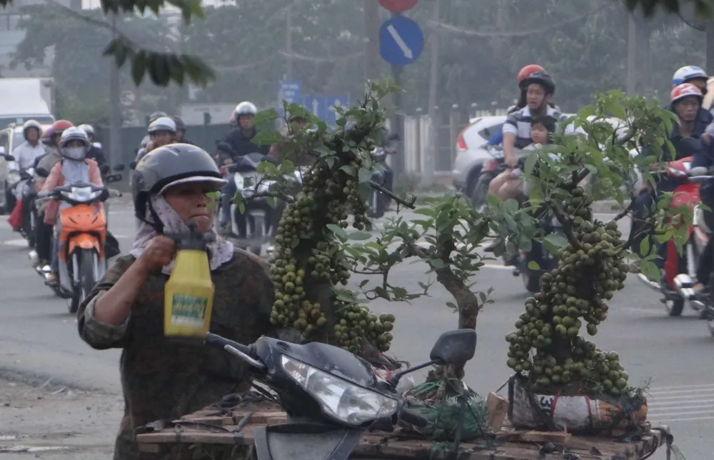 Trên tuyến quốc lộ 1A đoạn đi qua địa bàn quận 12, Bình Tân, chúng tôi cũng bắt gặp những người phụ nữ bán những cây sung kiểng với những chùm quả sung nhiều bất thường.