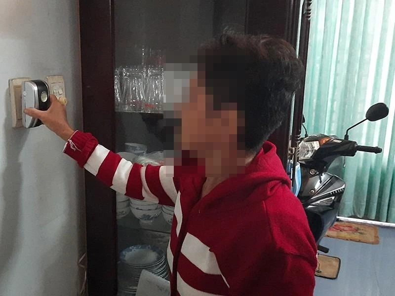 Một người dân mua thiết bị tiết kiệm điện về gắn tại nhà mình. Ảnh: TRÚC PHƯƠNG