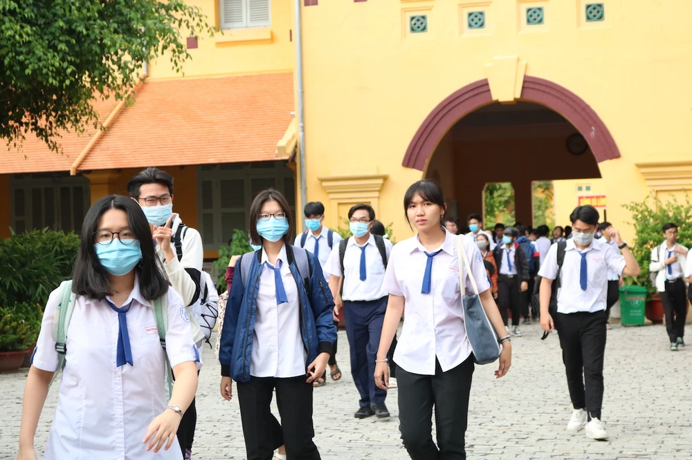 Thí sinh điểm thi Trưởng THPT Châu Văn Liêm (Cần Thơ) ung dung ra về sau buổi thi môn toán. Ảnh: HD