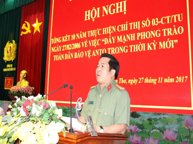 Thượng tá Đinh Văn Nơi, Phó Giám đốc Công an TP Cần Thơ, báo cáo tổng kết.