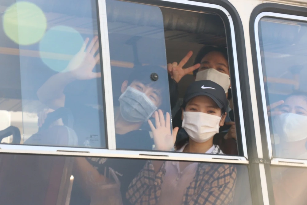 Bộ CHQS TP Cần Thơ tổ chức phương tiện đưa ra sân bay, bến xe, bến tàu trở về với gia đình. Ảnh: HẢI DƯƠNG