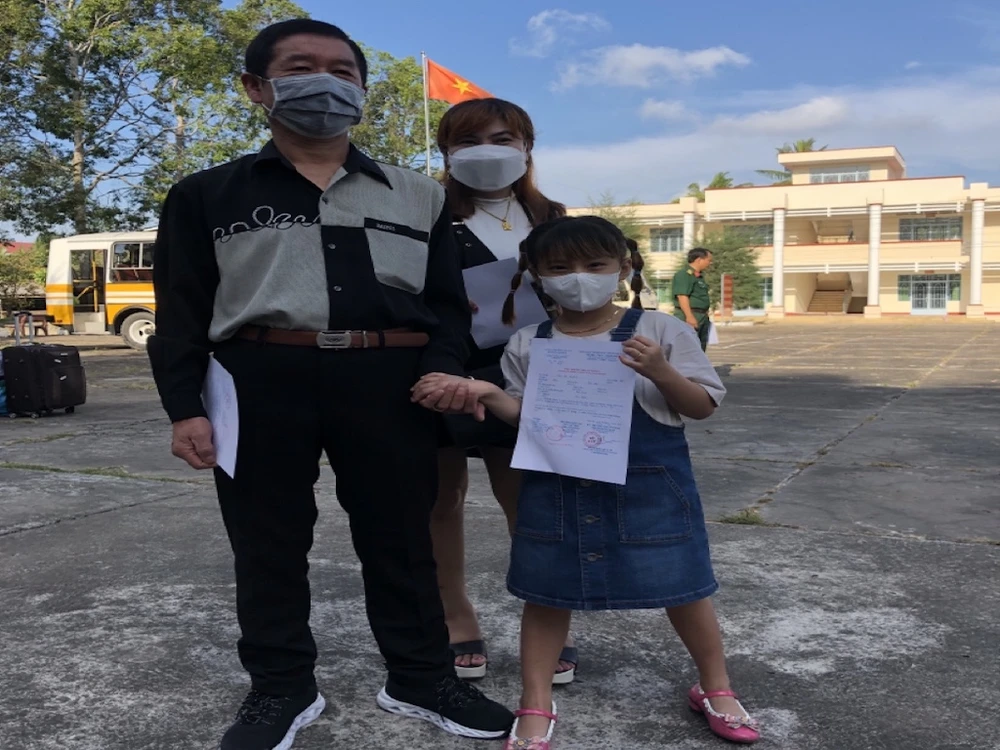 Vợ chồng và hai còn nhỏ đã hoàn thành cách ly, ông Đỗ Duy Hiển (36 tuổi, từ Hàn Quốc về) cho biết tâm trạng đang rất vui. “Gia đình tôi được về nhà Kiên Giang rồi, mừng quá. Cảm ơn các chú bộ đội nhiều lắm. Mấy anh chăm sóc chúng tôi rất nhiệt tình, quan tâm mọi thứ. Sẽ nhớ mọi người ở đây lắm” - ông Hiển chia sẻ.