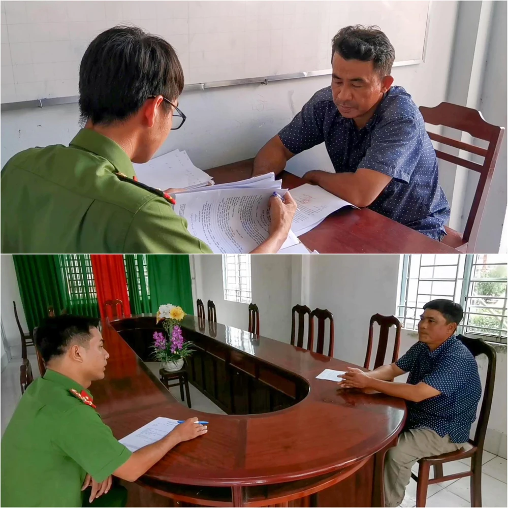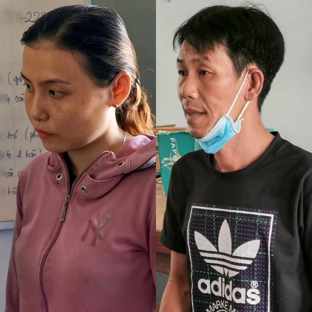 Vợ chồng Lê Thị Hồng Trang và Trương Dù Sướng tại cơ quan Công an. Ảnh: LM