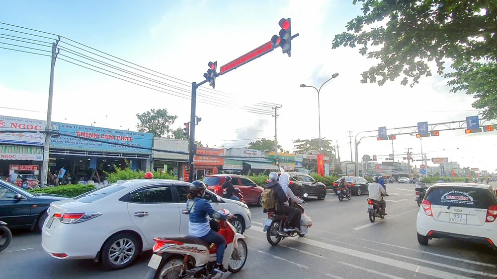 Cụ thể, hệ thống đèn tín hiện tại nút giao này được cải tạo lại bằng giá long môn (tức khung treo biển báo hiệu trên mặt đường), đồng thời, lắp thêm trụ đèn tín hiện cách giá long môn 20m.