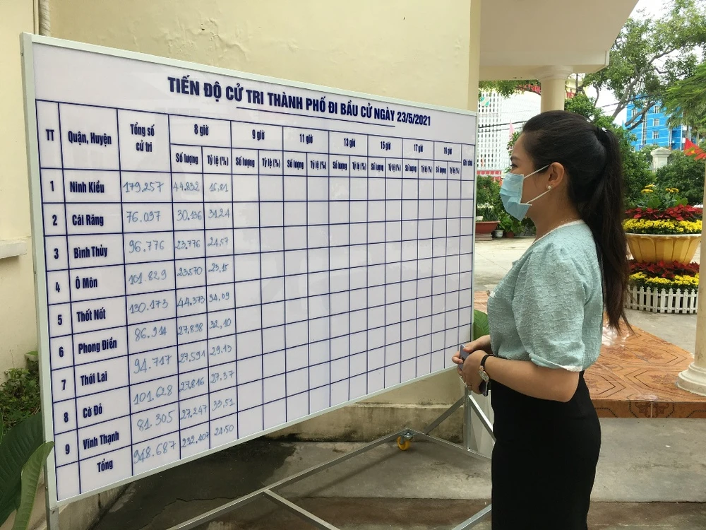 Bảng theo dõi tiến độ cử tri TP Cần Thơ đi bầu cử ngày 23-5. Ảnh: NHẪN NAM