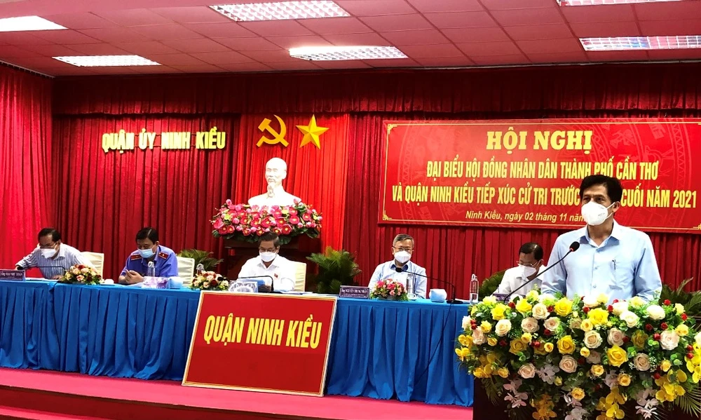 Tại Hội nghị tiếp xúc giữa cử tri quận Ninh Kiều với đại biểu HĐND TP và quận Ninh Kiều chiều ngày 2-11, cử tri Lê Thanh Bình (ngụ khu vực 3, phường Thới Bình) phản ánh công trình bảo đảm vệ sinh môi trường ở khu vực 3, phường Thới Bình vừa qua ngưng trệ vì dịch COVID-19.