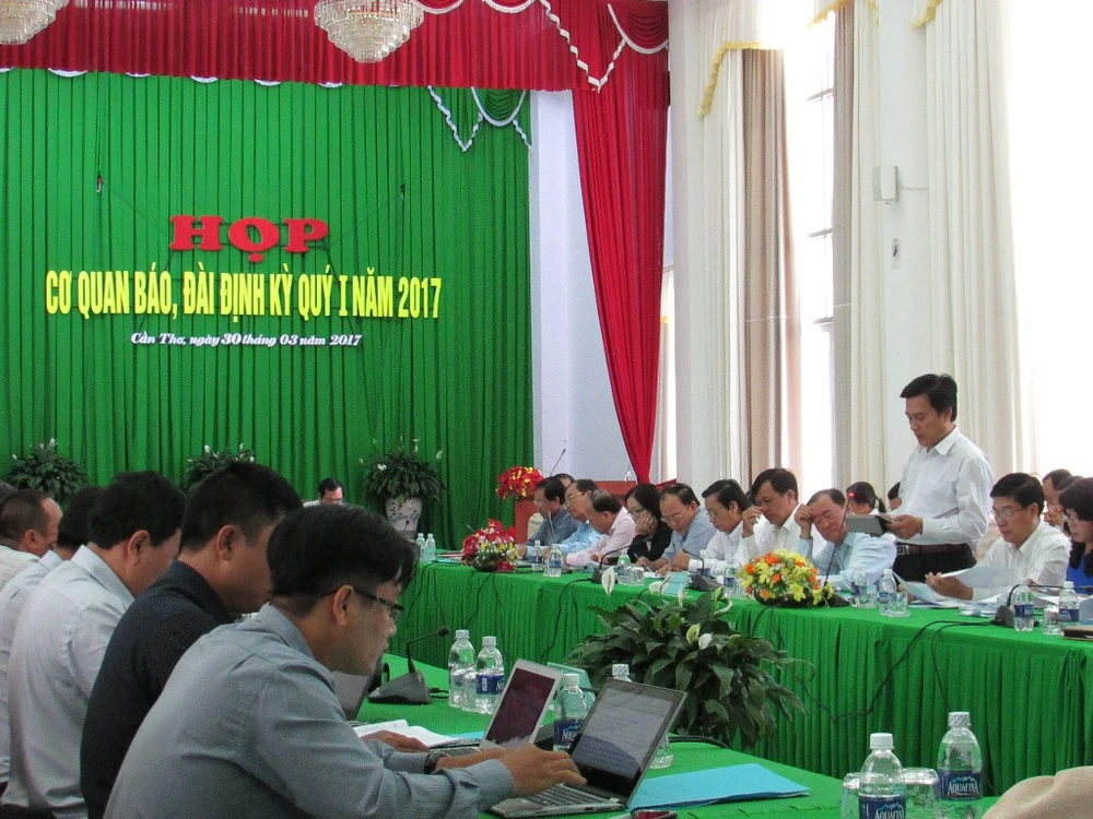 Quang cảnh buổi họp cơ quan báo, đài chiều 30-3. Ảnh: N.NAM
