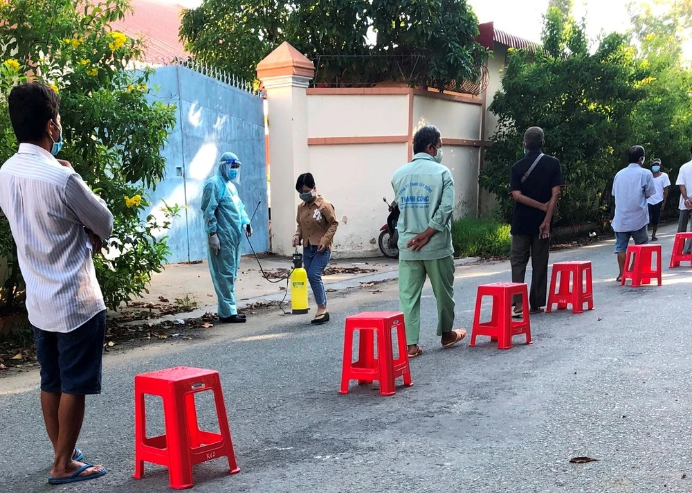 Người dân xếp hàng chờ test nhanh COVID-19 ở Cần Thơ. Ảnh: NN