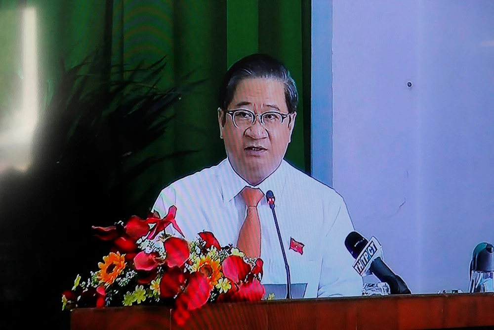 Chủ tịch UBND TP Cần Thơ Trần Việt Trường phát biểu giải trình một số nội dung tại kỳ họp thứ 2 HĐND TP Cần Thơ chiều 27-8. Ảnh chụp qua màn hình trực tuyến. Ảnh: NN