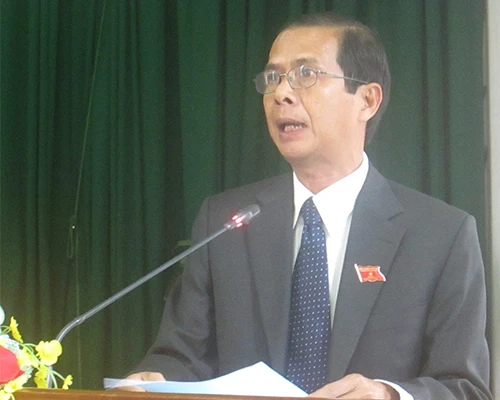 Tân Phó Chủ tịch UBND TP Cần Thơ (nhiệm kỳ 2011-2016) Nguyễn Thanh Dũng phát biểu nhận nhiệm vụ mới sáng 6-9. Ảnh: N.Nam