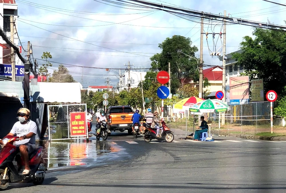 Dù thực hiện theo Chỉ thị 15 nhưng chốt kiểm soát ở quận Bình Thủy (Cần Thơ) vẫn hoạt động để kiểm soát người ở vùng theo Chỉ thị 16 đi vào. Ảnh: NHẪN NAM