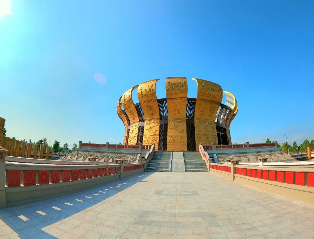 Đền thờ chính là hình trống đồng cách điệu 18 cánh. Ảnh: TP
