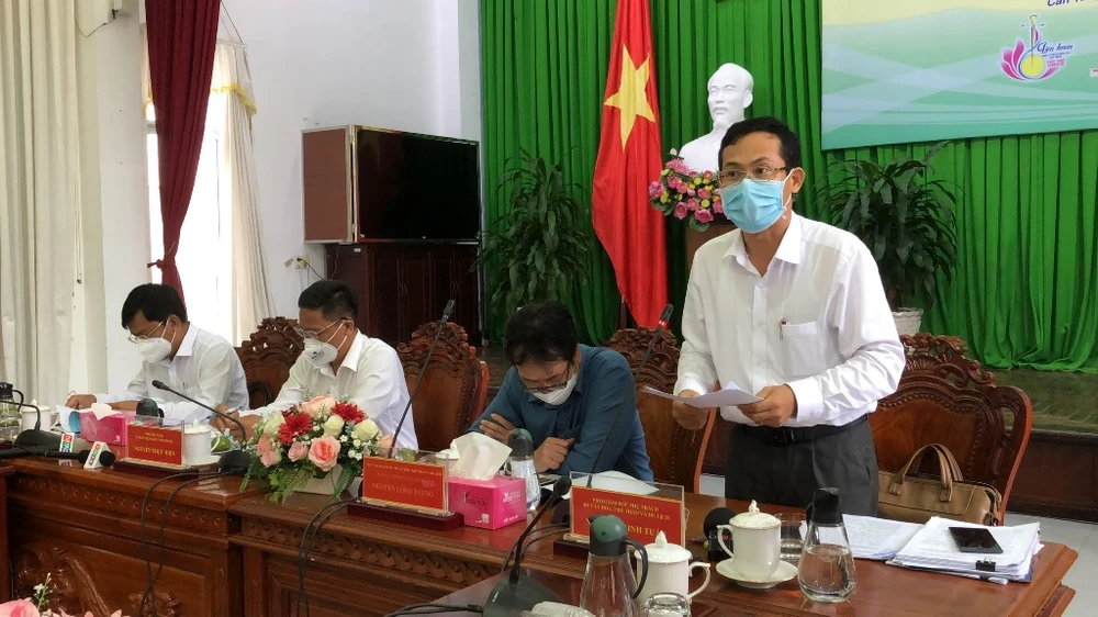Phó Giám đốc phụ trách Sở VH-TT&DL TP Cần Thơ thông tin về lễ khánh thành công trình Đền thờ Vua Hùng TP Cần Thơ. Ảnh: NHẪN NAM
