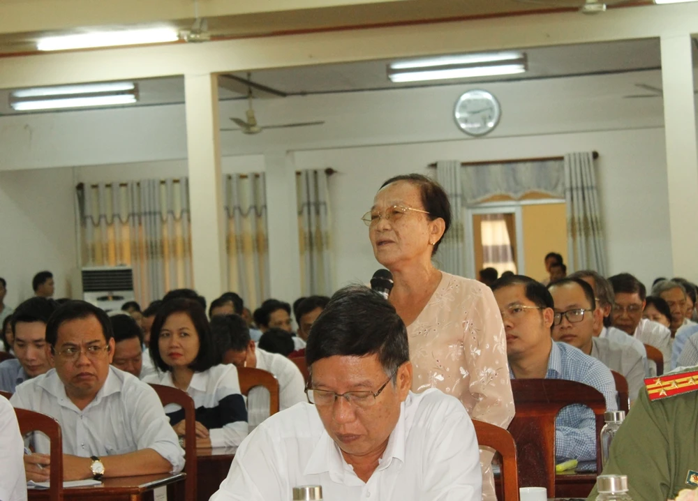 Cử tri quận Cái Răng phát biểu ý kiến tại buổi tiếp xúc với Đoàn ĐBQH đơn vị TP Cần Thơ. Ảnh: NHẪN NAM