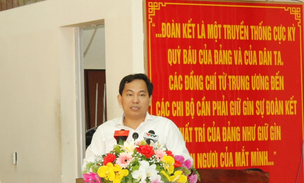 Chủ tịch UBND TP Cần Thơ Lê Quang Mạnh trả lời ý kiến cử tri tại buổi tiếp xúc giữa Đoàn ĐBQH đơn vị TP Cần Thơ với cử tri quận Cái Răng. Ảnh: NHẪN NAM