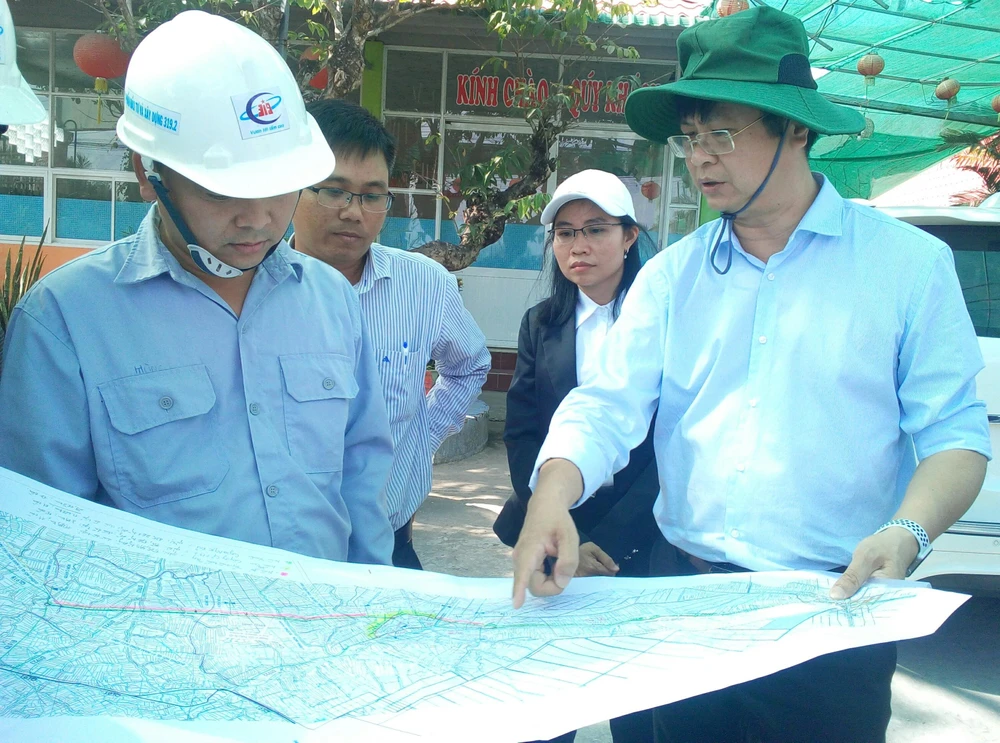 Phó Chủ tịch UBND TP Cần Thơ Trương Quang Hoài Nam xem bình đồ tuyến đường - Ảnh: CẨM GIANG