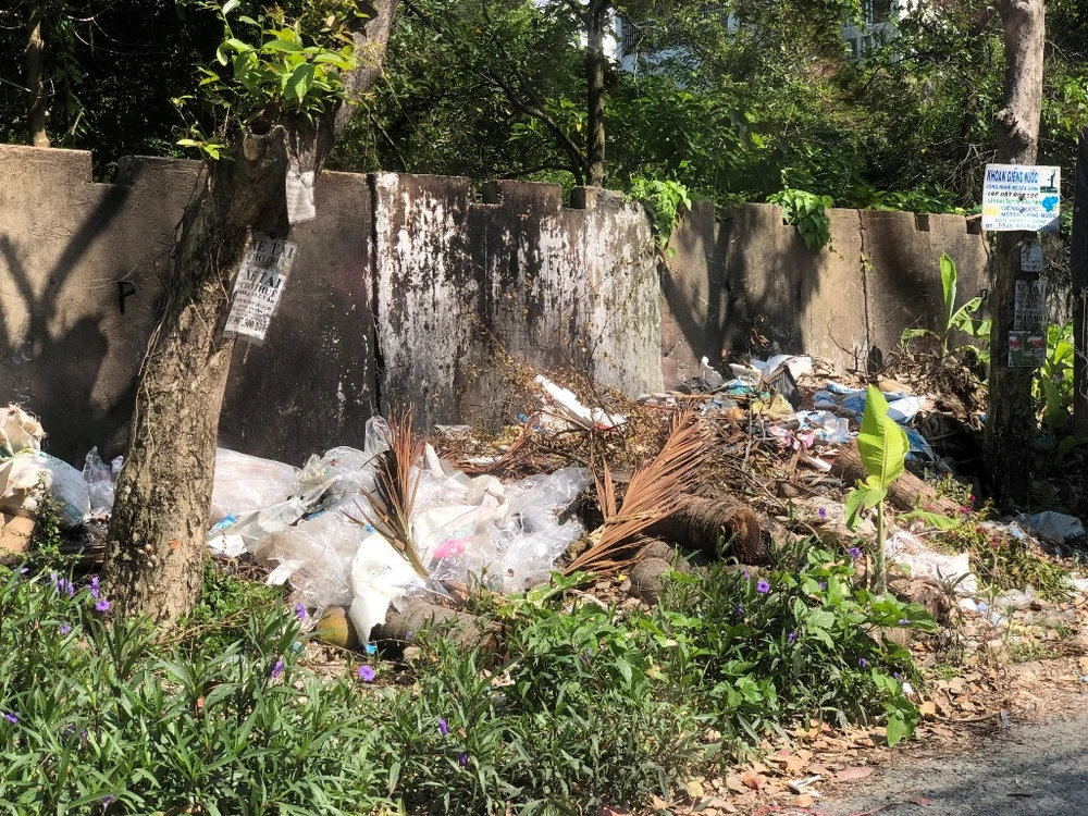 Rác thải chất đống phía sau sân vận động Quân khu 9 ở phường An Thới, quận Bình Thủy, TP Cần Thơ. Ảnh chụp chiều 7-12. Ảnh: NHẪN NAM