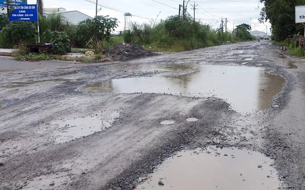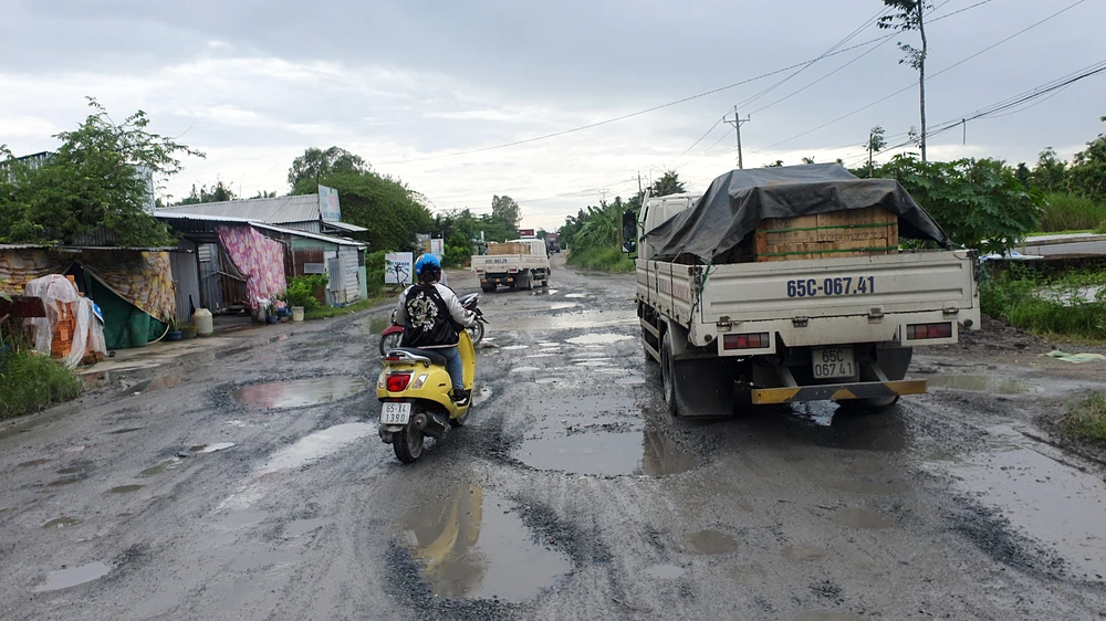 Hơn ba năm qua, tuyến đường này xuống cấp ngày càng nghiêm trọng hơn, ảnh hưởng đến việc kinh doanh của doanh nghiệp. Ảnh: CHÂU ANH