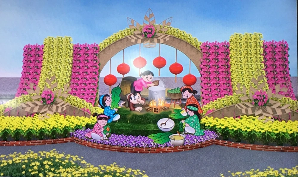 Mô hình cổng chính của đường hoa Cần Thơ năm 2021. Ảnh: NHẪN NAM