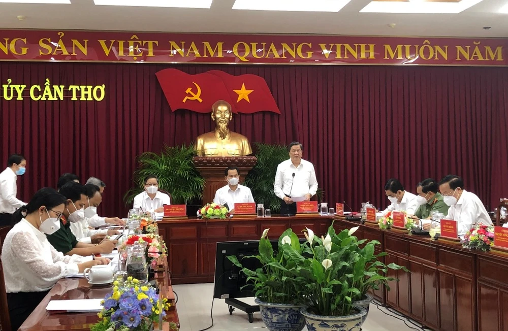 Ban chỉ đạo công tác phòng, chống dịch bệnh COVID-19 TP Cần Thơ họp chiều 15-10. Ảnh: NHẪN NAM