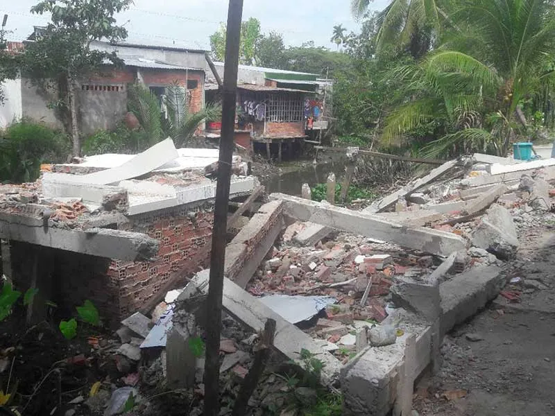 Dãy nhà không phép ở Long Tuyền, quận Bình Thủy bị cưỡng chế tháo dỡ. Ảnh: HẢI DƯƠNG