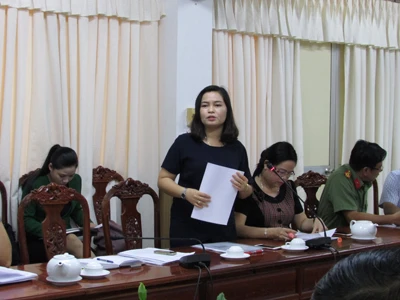 Bà Trần Hồng Thắm thông tin về kỳ thi THPT quốc gia tại TP Cần Thơ, chiều 15-6. Ảnh: N.NAM