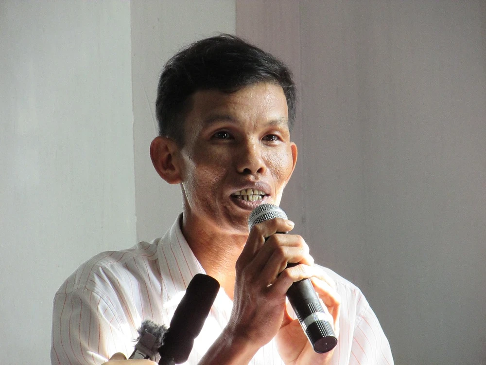 Cử tri Lê Quốc Khải nêu ý kiến ngày 27-9. Ảnh: NN