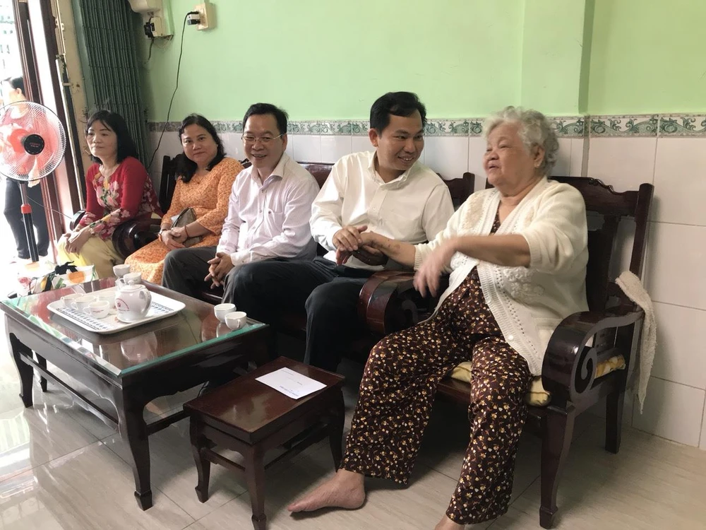 Sau buổi họp mặt, Chủ tịch UBND TP Lê Quang Mạnh cùng đoàn lãnh đạo TP đến thăm Mẹ Việt Nam anh hùng Phạm Thị Ẩn và Anh hùng lực lượng vũ trang Nguyễn Hữu Phước (ngụ quận Ninh Kiều).