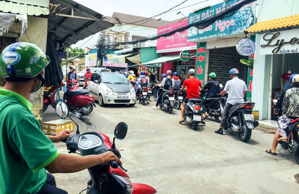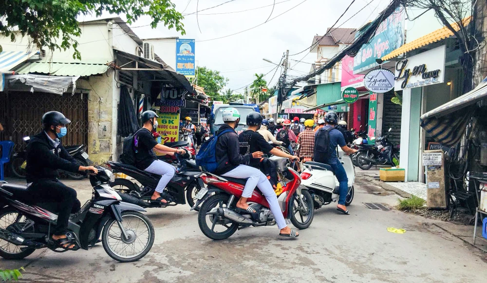 Mỗi ngày ba lượt sáng, trưa và chiều tối là khoảng thời gian kinh hoàng của người dân trong hẻm. Bởi những khung giờ này, rất nhiều người chọn con đường này lưu thông để tránh kẹt xe tại nút giao đường 3-2 với đường Nguyễn Văn Linh.