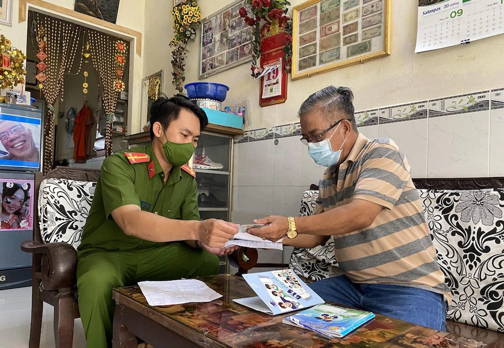 Thơ đến tận nhà trao thẻ CCCD gắn chíp điện tử cho người dân và hướng dẫn những tiện ích khi sử dụng thẻ CCCD gắn chíp điện tử cũng như ứng dụng