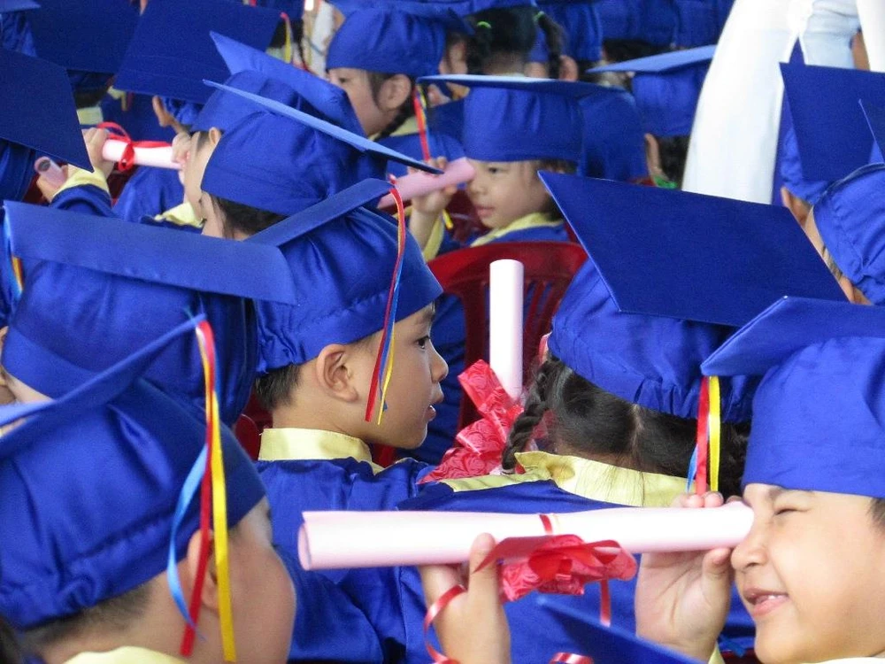 Học sinh mẫu giáo trong ngày lễ tốt nghiệp. Ảnh: NN