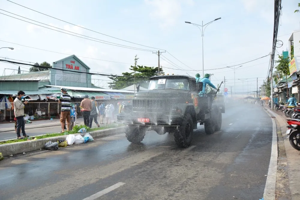 Nhiều tuyến đường được phun hóa chất khử trùng ở Cần Thơ. Ảnh: Hữu Lễ