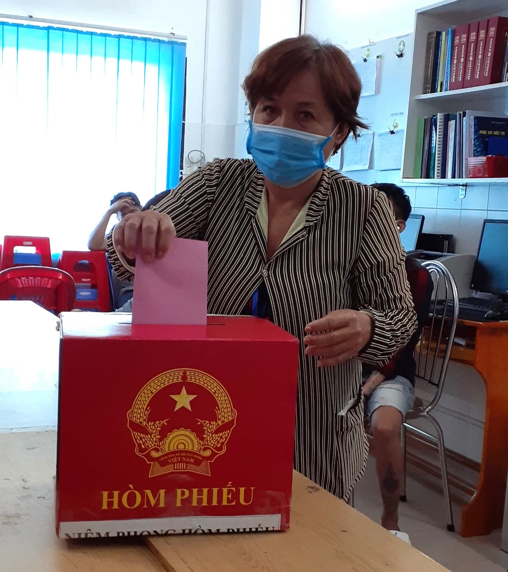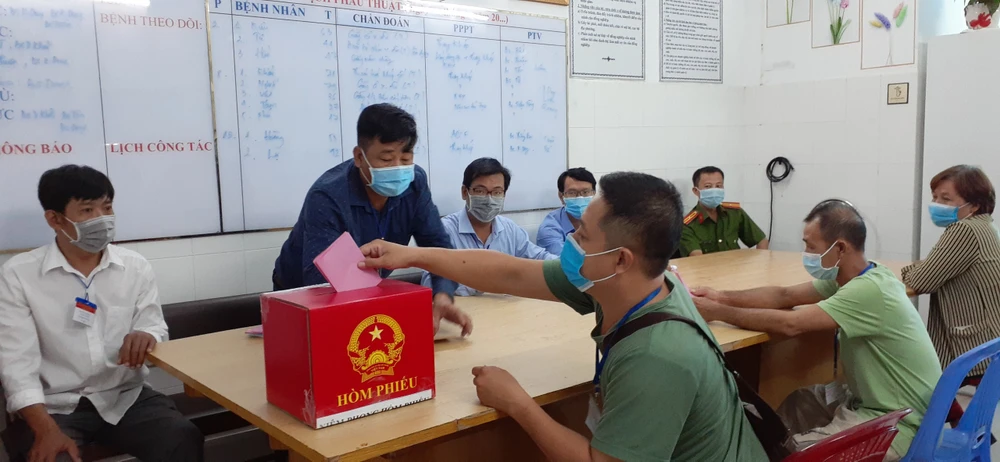 Để đảm quyền của cử tri, Tổ bầu cử số 7, phường An Khánh, quận Ninh Kiều, TP Cần Thơ phối hợp với Bệnh viện trực tiếp mang theo hòm phiếu đến bệnh viện để người dân bỏ phiếu bầu.