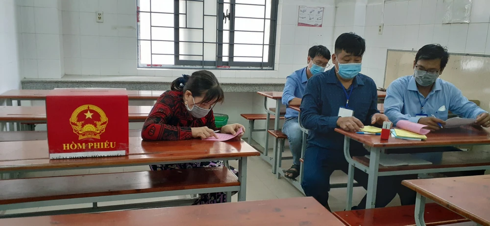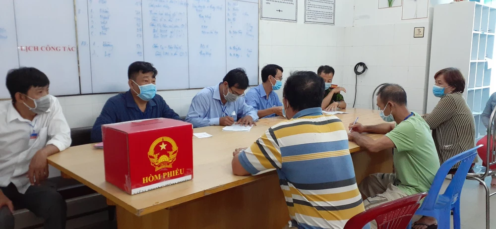 Công tác bầu cử được thực hiện đúng quy định, đảm bảo các biện pháp phòng chống dịch COVID-19. Ảnh: HD