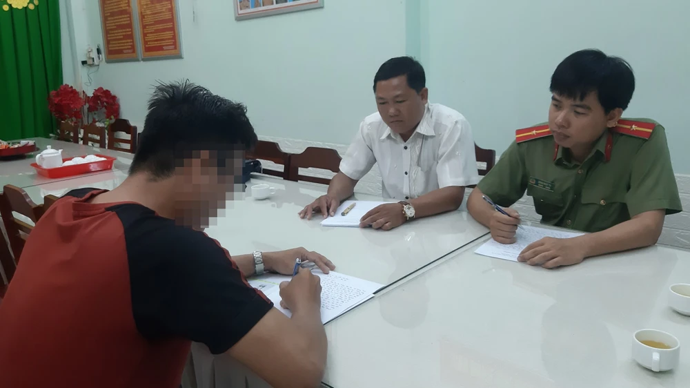 T. đang làm tường trình và cam kết không tái phạm tại cơ quan công an. Ảnh: HẢI DƯƠNG