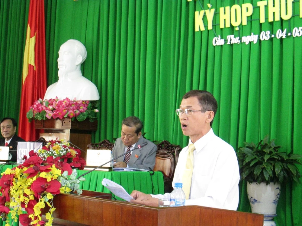 Ông Nguyễn Thanh Thiên – Chánh án TAND TP Cần Thơ báo cáo tình hình hoạt động tòa án hai cấp năm 2014 tại kỳ họp HĐND TP Cần Thơ ngày 3-12. Ảnh: N.Nam