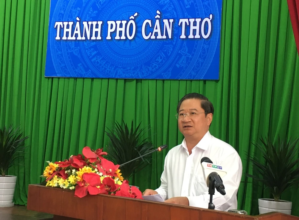 Chủ tịch UBND TP Cần Thơ Trần Việt Trường phát biểu kết luận tại cuộc họp. Ảnh: NHẪN NAM